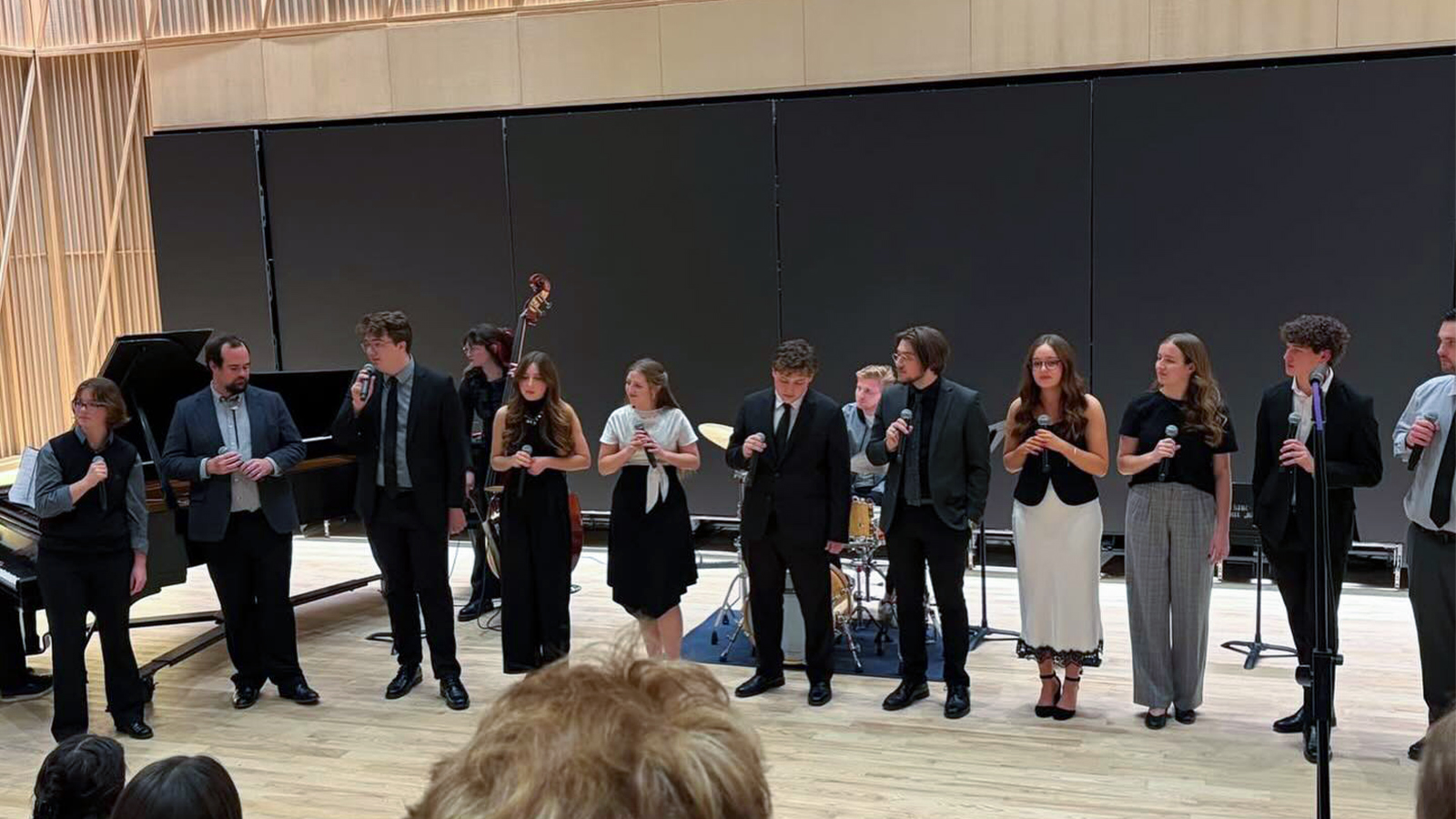 The UNL Jazz Singers perform in the new Westbrook Music Building Performance Hall during their final concert of 2025 on Dec. 10. The recital also featured the Elkhorn North Choir.